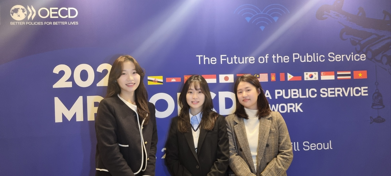 공공가치론을 수강하는 구가영(행정 21), 김효은(행정 22), 신성경(행정 22), 장수련(행정 22) 학생은 지난 11월 20일~21일 그랜드 워커힐 서울에서 진행된 MPM-OECD Asia Public Service Network과 Global Young Civil Servants Networking Workshop에 참가하였습니다.
