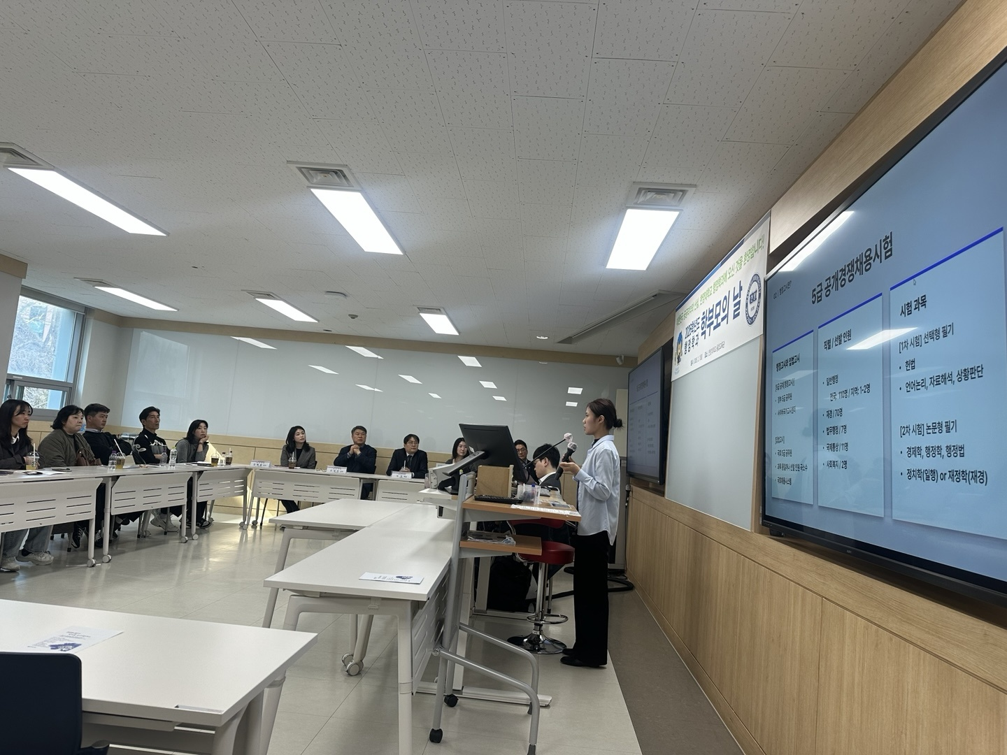 * 행정고시를 통한 공직진출: 통일부 사무관으로 훌륭히 공직을 수행 중인 장애리 동문(행정11)이 행정고시 합격 후 통일부에서의 생동감 넘치는 현장 이야기를 들려주었습니다. 이어 2025년에 행정고시와 입법고시 양과를 모두 합격하는 쾌거를 이룬 김지은 학생(행정21)이 후배들을 위해 자신만의 생생하고 실질적인 수험 준비 노하우를 아낌없이 공유했습니다.