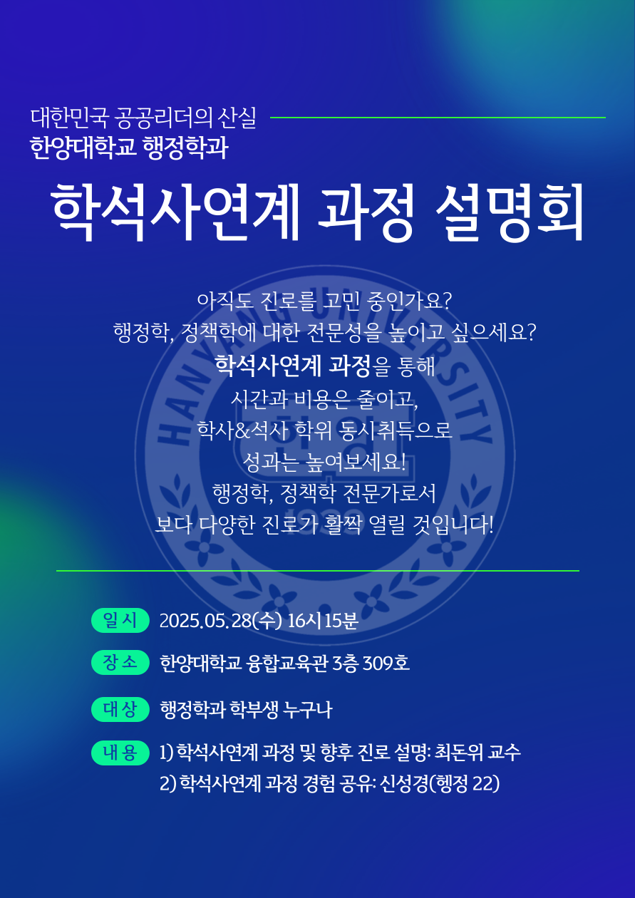 [공지] 2025학년도 행정학과 학석사연계과정 설명회 안내