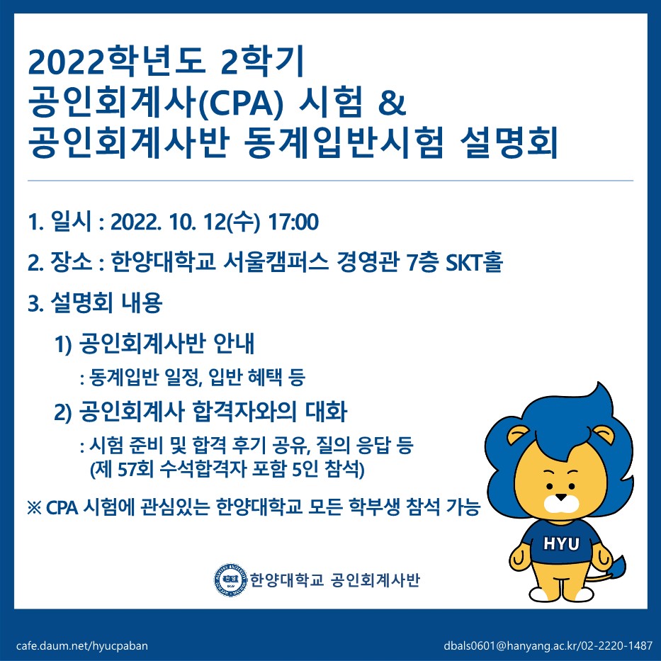 2022학년도 2학기 공인회계사(CPA) 시험 & 공인회계사반 동계입반 시험 설명회