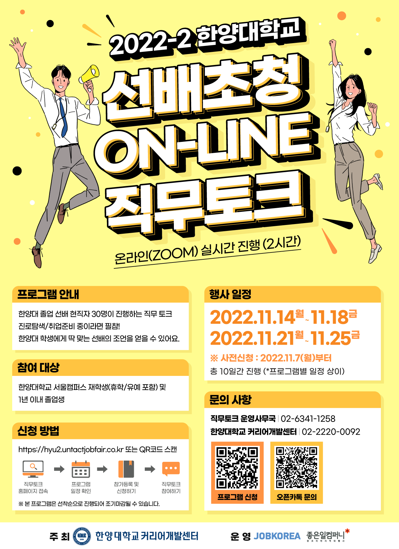 2. 2022-2 한양대학교 선배초청 온라인 직무토크 참여안내 1부. 끝.