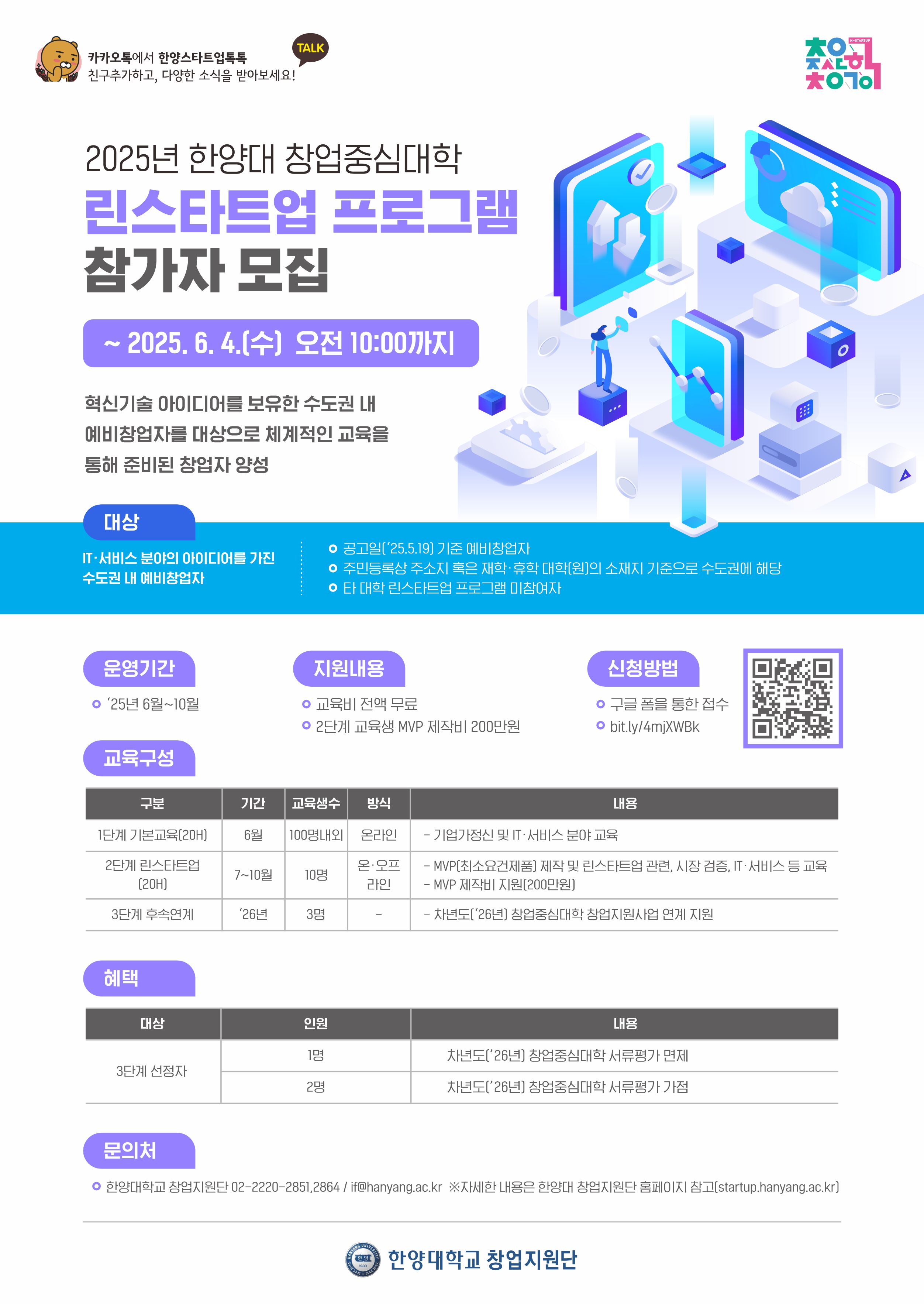 바. 문의처: 한양대학교 창업지원단(02-2220-2851,2864 / if@hanyang.ac.kr)