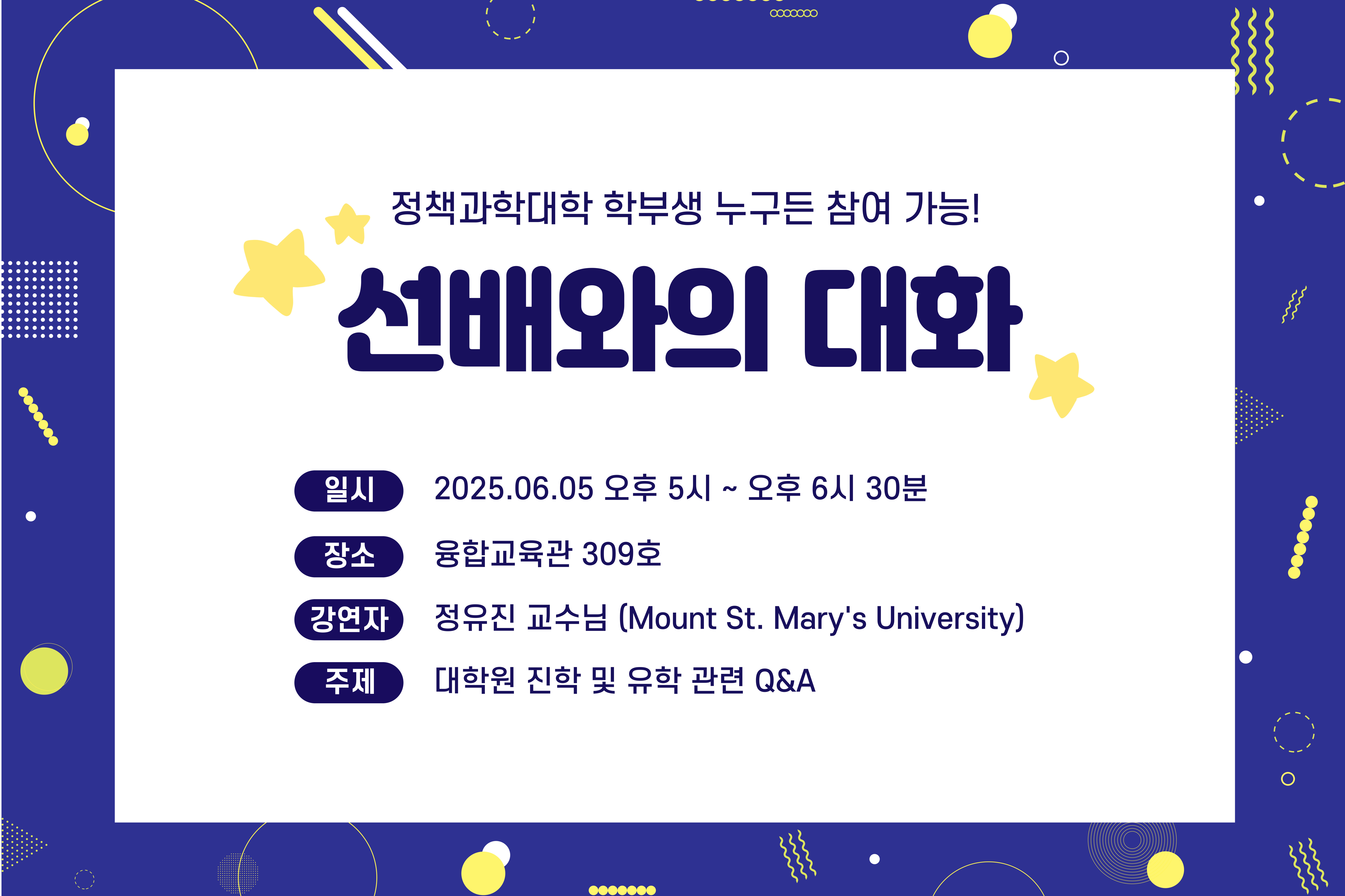 2025학년도 한양대학교 선배와의 대화와 관련하여 다음과 같이 안내드립니다.